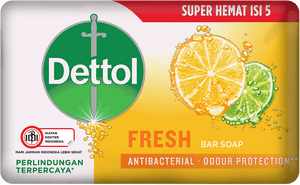 Sabun Batang Anti Bakteri Dettol Fresh menggabungkan perlindungan terpercaya* Dettol dengan harum jeruk yuzu untuk kulit bersih, segar, dan terlindungi dan kuman penyebab bau badan. *Dibanding sabun non antibakteri